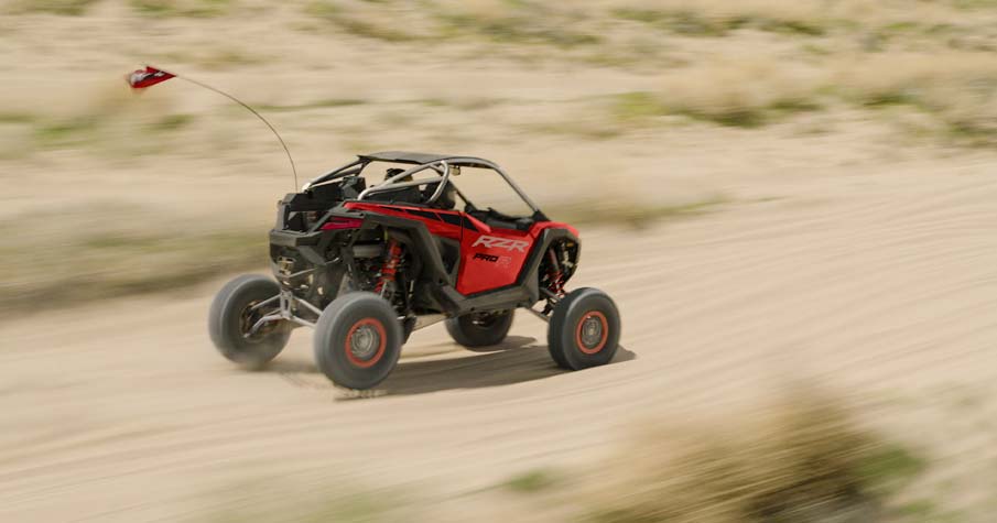 Llega y destaca del resto con el nuevo y agresivo diseño de RZR Pro R, que ofrece más estilo y desempeño para ser el mejor todo.